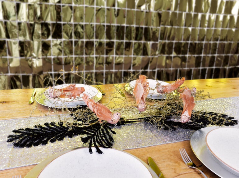 Geen kerst zonder goud. De bladeren van de tak glinsteren ook fijn mee!