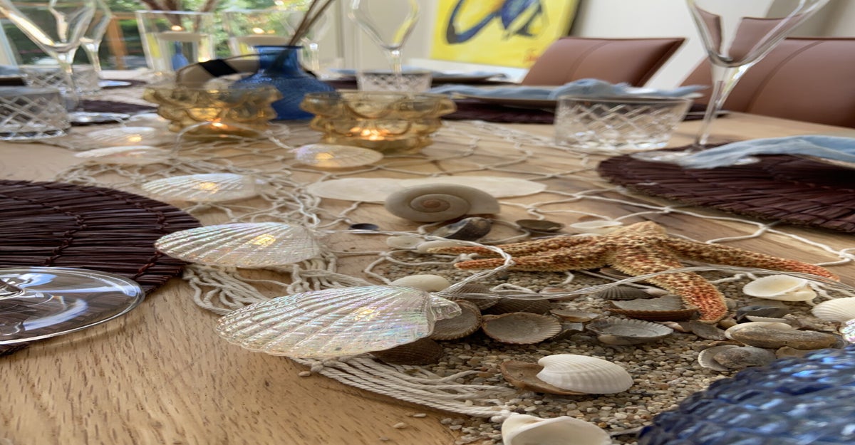 - zak met 2 zeesterren en schelpen