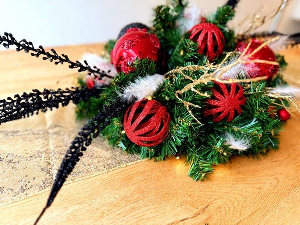 "Glistening Red Elegance" Luxe Versierde Kerstslinger