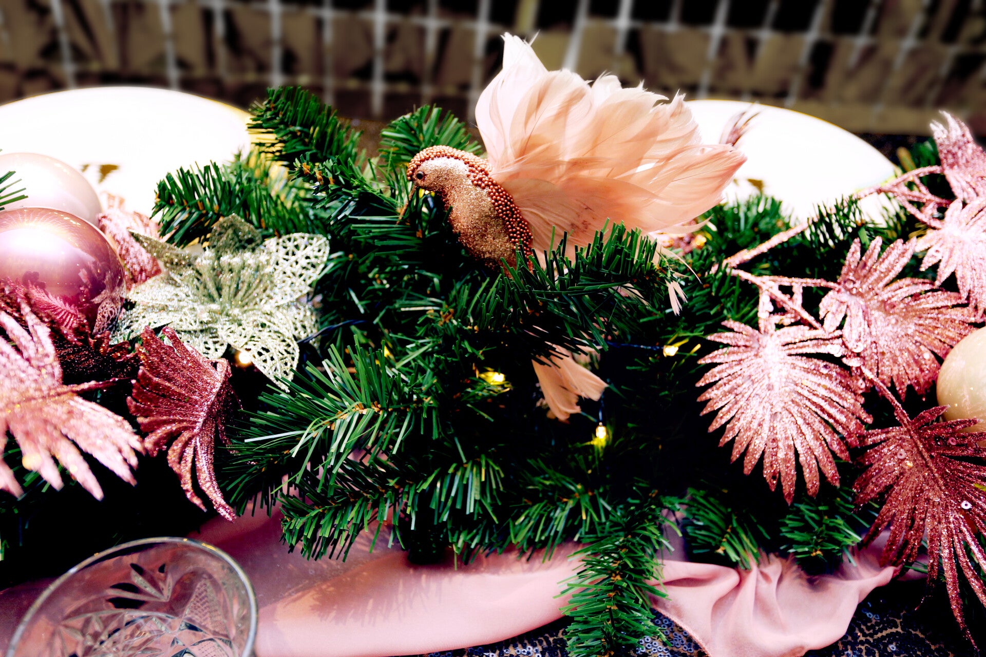 Wow! Je tafel wordt prachtig bedekt met een roze gloed en in elke hoek ontdek je weer nieuwe glitters. Een prachtig groot kerststuk waarmee je jouw gasten zeker imponeert!